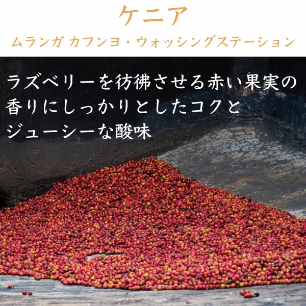 ケニアらしさを感じつつも毎朝飲んでも飽きの来ない、上品さを兼ね備えてます。